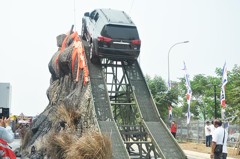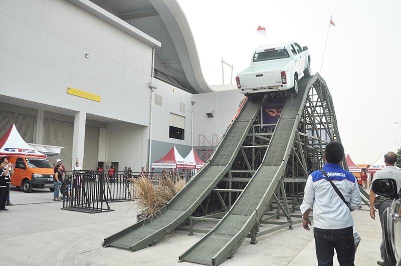 Sejumlah program acara hiburan atraktif menjadi salah satu daya tarik bagi pengunjung untuk hadir di GAIKINDO Indonesia Internasional Auto Show (GIIAS) 2015. Salah satunya adalah program “4×4 Challenge” yang berlangsung di Loading Hall 2. Di acara ini pengunjung akan diajak merasakan ketangguhan kendaraan 4×4 dari beberapa merek dan seolah-olah sedang melintas di medan offroad. Medan “4×4 Challenge” ini memiliki trek setinggi enam meter, dan menjadi yang pertama dan tertinggi di Indonesia. (Foto-foto: Markus Deni Kuncoro – GAIKINDO News)