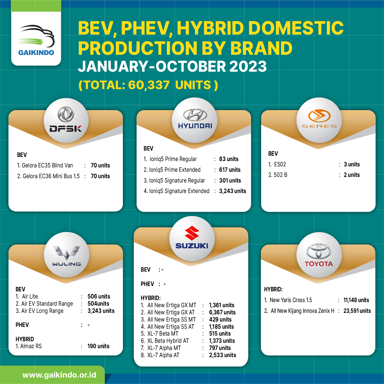 BEV, PHEV, & Hybrid Domestic Production by Brand January-October 2023