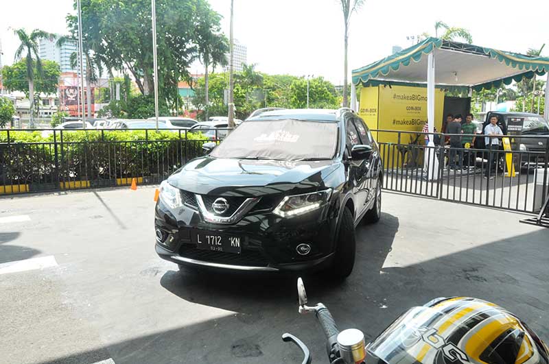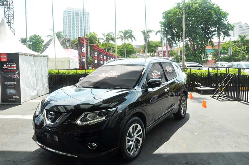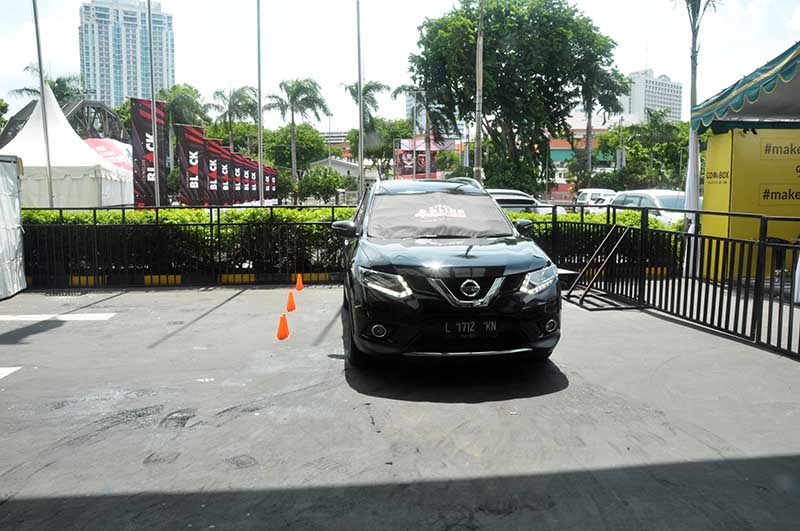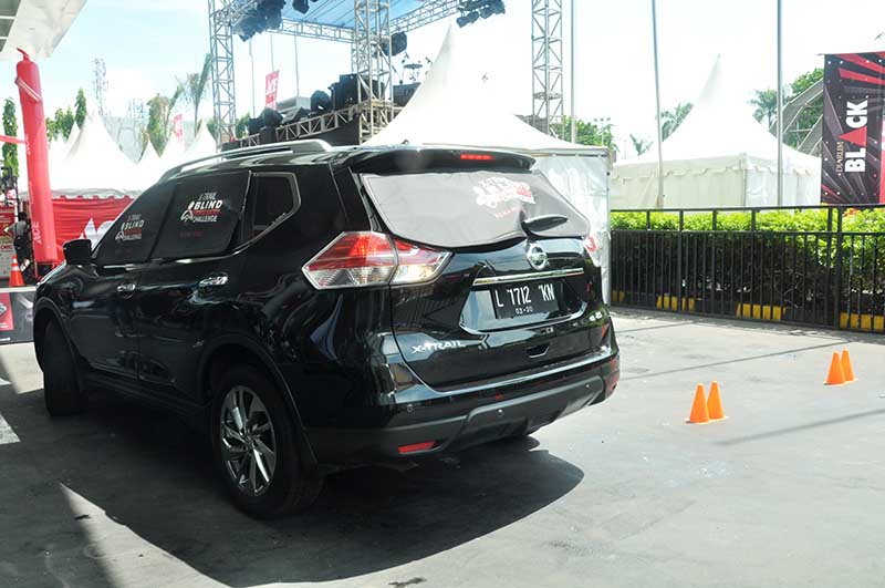 Di GIIAS Surabaya 2015, Nissan memberikan tantangan kepada pengunjung di acara X-Trail Blind Parking Challenge untuk mencoba memarkir kendaraan tnapa melihat kaca spion ataupun menengok ke samping dan ke belakang. Seluruh kaca ditutup sehingga pengemudi tidak dapat melihat objek dari luar mobil tetapi dapat dibantu dengan fitur Around View Monitor (AVM). (Foto-foto: Markus Deni Kuncoro – GAIKINDO News)