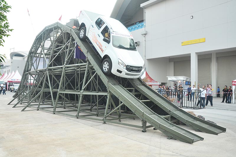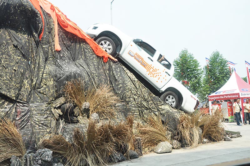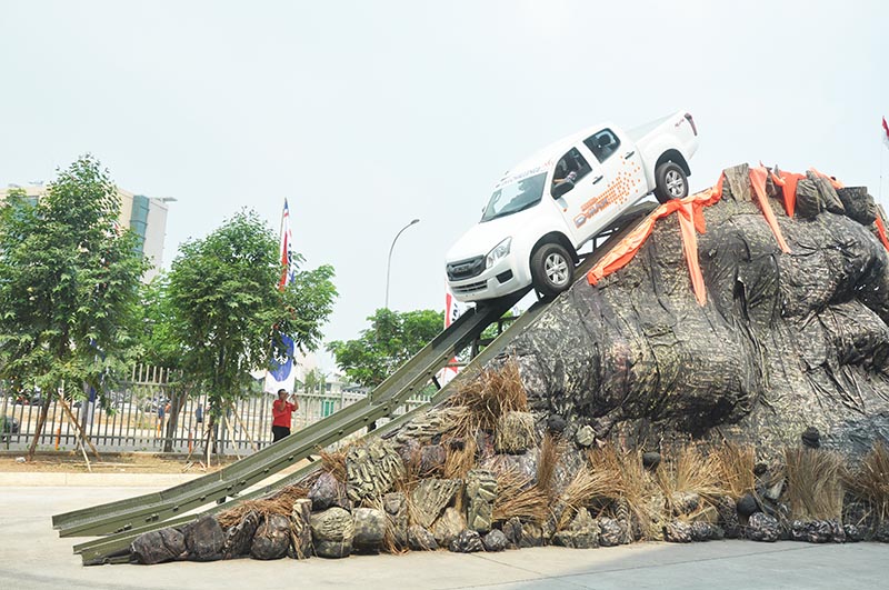 A number of attractive entertainment programmes become one of the attractions for visitors at the GAIKINDO Indonesia International Auto Show (GIIAS) 2015. One of them is the “4 × 4 Challenge” that takes place in Loading Hall 2. In this event, visitors will be invited to feel the toughness of 4×4 vehicles of several brands as if they were wading through off-road terrain. (Photos: Markus Deni Kuncoro – GAIKINDO News)