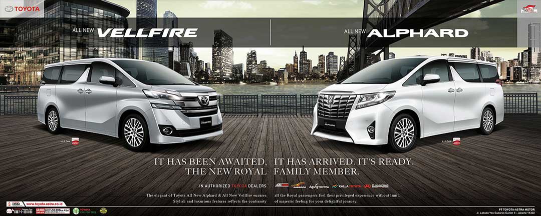 “All New Alphard dan All New Vellfire didisain dan dikembangkan dalam konsep grandeluxe, kendaraan yang menawarkan kualitas kemewahan tertinggi dalam segala tampilan dan peralatannya. Kehadiran MPV Luxury ini wujud apresiasi sekaligus konsistensi Toyota atas keberadaan MPV Luxury tersebut selama ini di Indonesia, sebagai pilihan utama konsumen tanah air selama 6 tahun berturut-turut di segmennya,” kata Vice President PT Toyota-Astra Motor (TAM), Suparno Djasmin, pada acara peluncuran All New Alphard dan All New Vellfire.