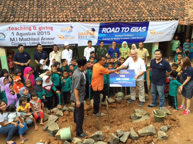 GAIKINDO pays extraordinary attention to national education by launching a social obligation to help build sanitary facility for an elementary school in a rural area of Banten Province by the end of July 2015. Concerns and supports to national education elevates and becomes more well-organised with the establishment of “GIIAS 2015 Educare Programme”, a social activity focusing on education at large. The programme this time is implemented in a partnership with “1.000-teacher Community” under theme “Teaching and Traveling”. (FOTO-FOTO: Seven Events)