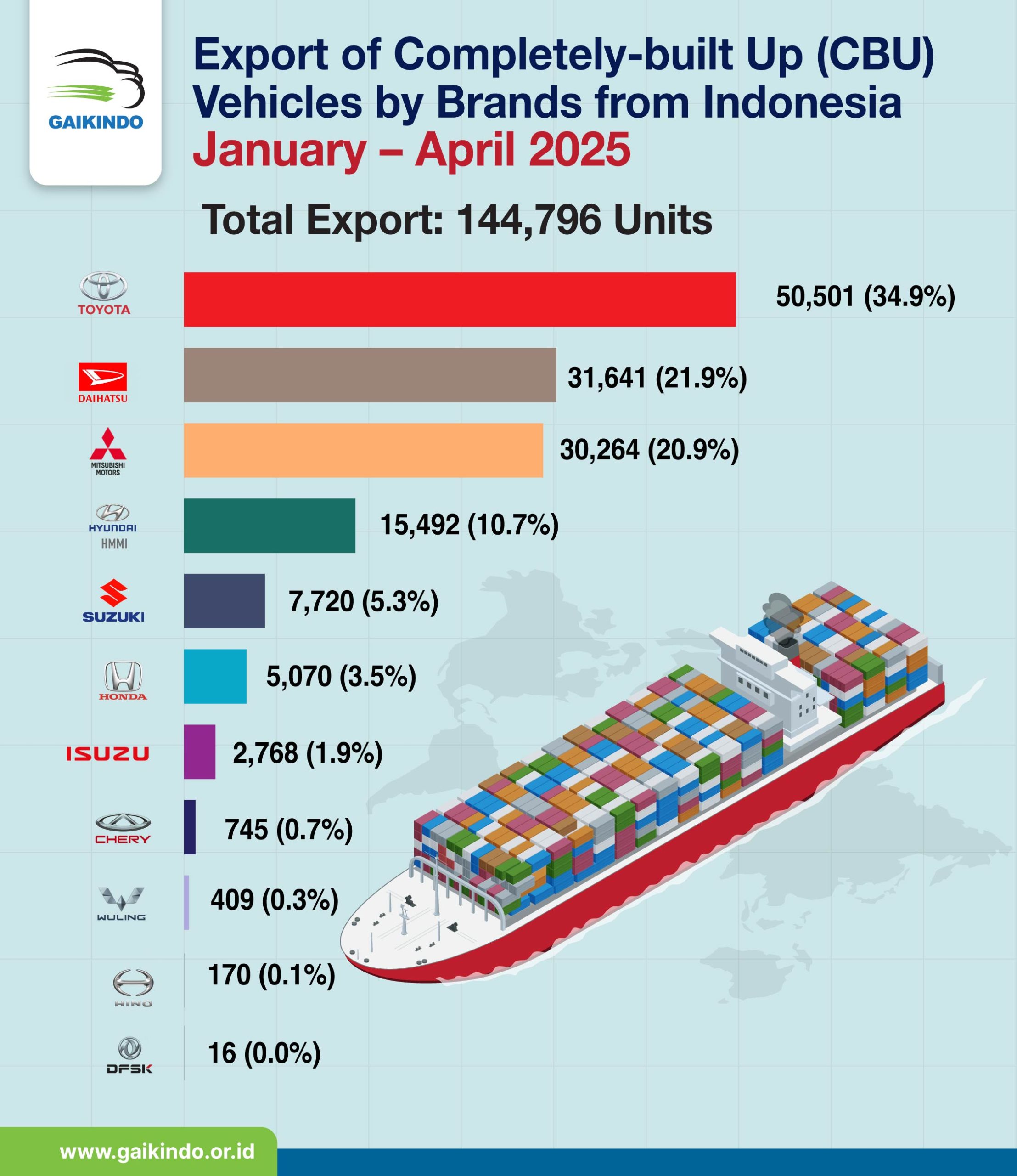 Export of Completely-built up (CBU) Vehicles from Indonesia by Brands, January-April 2025