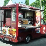 Konsep berdagang makanan dengan menggunakan mobil bak yang berasal dari Amerika Serikat (AS) yang biasa disebut foodtruck turut meramaikan GIIAS 2015 Surabaya. Berbagai jenis makanan maupun minuman disajikan dari mobil yang dimodifikasi. Pengunjung pameran tak perlu khawatir soal ketersediaan makanan. Menu yang ditawarkanpun beraneka ragam mulai dari kopi, masakan Indonesia sampai hidangan ala Timur Tengah dan Barat. (Foto-foto: Markus Deni Kuncoro – GAIKINDO News)