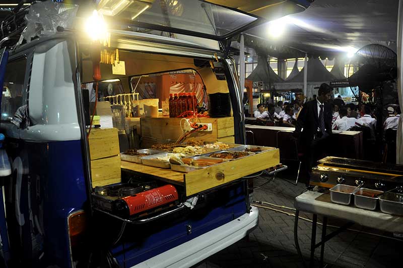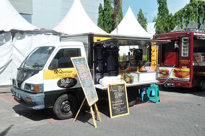 Konsep berdagang makanan dengan menggunakan mobil bak yang berasal dari Amerika Serikat (AS) yang biasa disebut foodtruck turut meramaikan GIIAS 2015 Surabaya. Berbagai jenis makanan maupun minuman disajikan dari mobil yang dimodifikasi. Pengunjung pameran tak perlu khawatir soal ketersediaan makanan. Menu yang ditawarkanpun beraneka ragam mulai dari kopi, masakan Indonesia sampai hidangan ala Timur Tengah dan Barat. (Foto-foto: Markus Deni Kuncoro – GAIKINDO News)