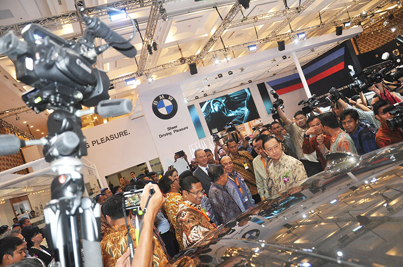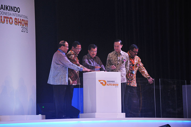 Wakil Presiden Jusuf Kalla membuka pameran GAIKINDO Indonesia International Auto Show (GIIAS) 2015 di gedung Indonesia Conference Exhibition (ICE) di Bumi Serpong Damai (BSD) City, Kamis 20 Agustus 2015. Hadir pula dalam acara tersebut Menteri Perindustrian Saleh Husin, Menteri Perdagangan Thomas Trikasih Lembong, dan manta Menteri Perdagangan Rahmad Gobel. GIIAS adalah pameran mobil resmi yang diselenggarakan Gabungan Industri Otomotif Indonesia (GAIKINDO) dari 20 hingga 30 Agustus 2015. GIIAS mendapat dukungan dan diakui oleh Organisasi Industri Otomotif Internasional (OICA). Mobil baru berbagai model dan mobil konsep tampil dalam GIIAS 2015. (Foto-foto: Markus Deni Kuncoro, Atti Kurnia, Sigit Pramono– GAIKINDO News)