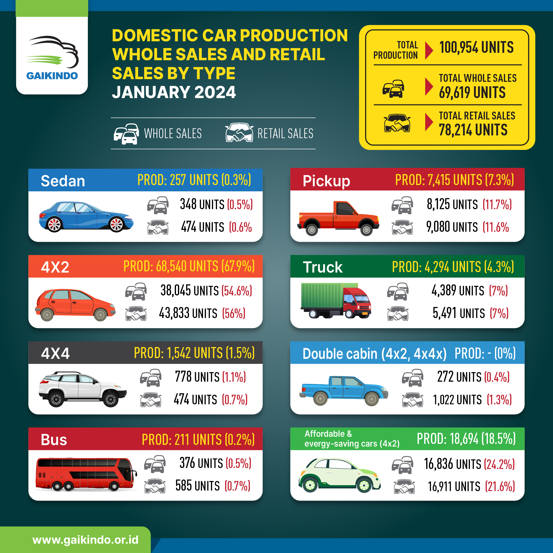 Indonesia Vehicle Retail Sales, Whole Sales, and Production by Type January 2024