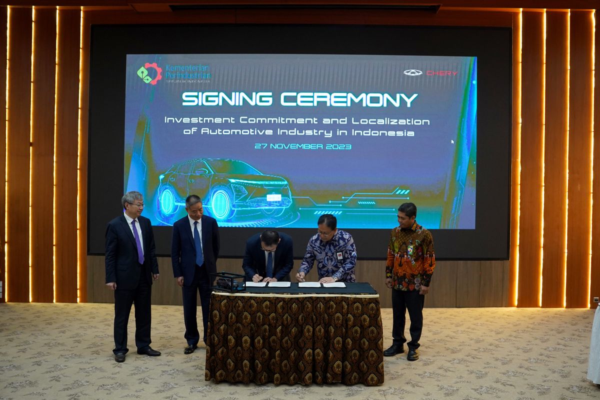 KOMPAS— PT Chery Sales Indonesia (CSI) menandatangani surat pernyataan niat (letter of intent, LoI) bersama Direktorat Jenderal Industri Logam, Mesin, Alat Transportasi, dan Elektronika (Ditjen ILMATE), Kementerian Perindustrian Republik Indonesia (Kemenperin). Penandatanganan LoI ini dilakukan oleh Qu Jizong, Executive Vice President dari PT Chery Sales Indonesia dan Hendro Martono, Direktur Industri Maritim, Alat Transportasi dan Alat Pertahanan (IMATAP yang mewakili Ditjen ILMATE Kemenperin).