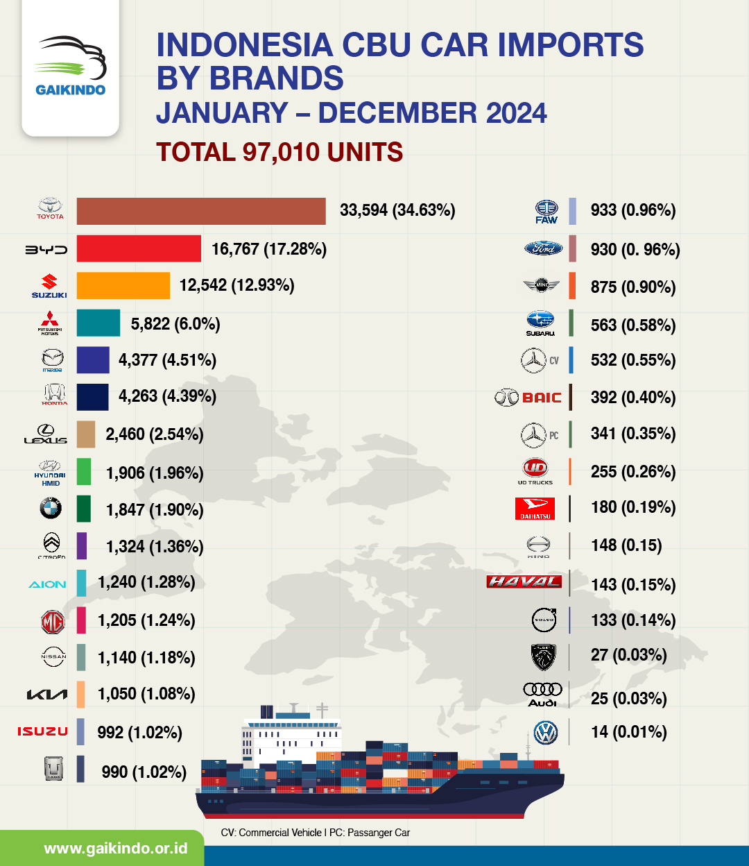 Jumlah Total Impor Mobil ke Indonesia Berdasar Merek dari januari sampai Desember 2024