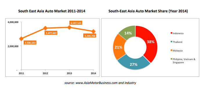 Pasar kendaraan Asia Tenggara yang lebih kecil— Malaysia, Filipina, dan Vietnam—mencatat rekor baru penjualan pada 2014. Ini karena kuatnya pertumbuhan ekonomi. Penjualan kendaraan di Malaysia pada 2014 meningkat 1.6% jadi 666.464 unit. Penjualan kendaraan Singapura juga tumbuh pada 2014 meski produk domestik bruto (PDB)-nya melambat.