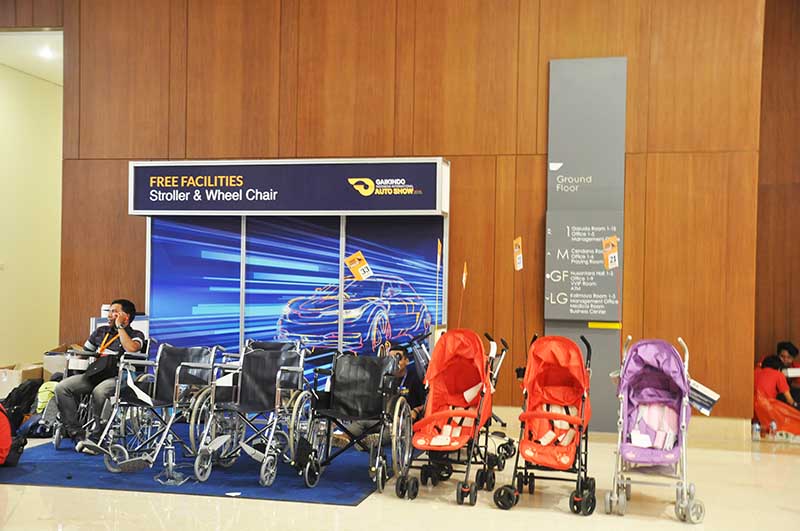 Sebagai pameran mobil berkelas internasional, GAIKINDO Indonesia International Auto Show (GIIAS) sangat memanjakan pengunjungnya dengan berbagai fasilitas yang dengan cermat disediakan oleh panitia pelaksana yang diketuai oleh Johnny Darmawan. Beberapa fasilitas yang disiapkan khusus oleh panitia untuk kemudahan dan kenyamanan pengunjung ini antara lain mencakup bus antar-jemput (shuttle bus) gratis dari 19 titik di Jakarta dan sekitarnya, musholla, toilet dengan jumlah yang cukup banyak, lounge area untuk bersantai dan beristirahat, peta petunjuk layar sentuh, peminjaman baby stroller & wheel chair gratis, area permainan anak-anak, charging corner, fasilitas restoran seperti food hall & food truck, serta juga area parkir yang luas. GIIAS 2015 berlangsung di gedung baru berasitektur modern Indonesia Convention Exhibition (ICE), Bumi Serpong Damai (BSD) City dari 20 sampai 30 Agustus 2015. (Foto-foto: Markus Deni Kuncoro, Atti Kurnia, Sigit Pramono — GAIKINDO News)