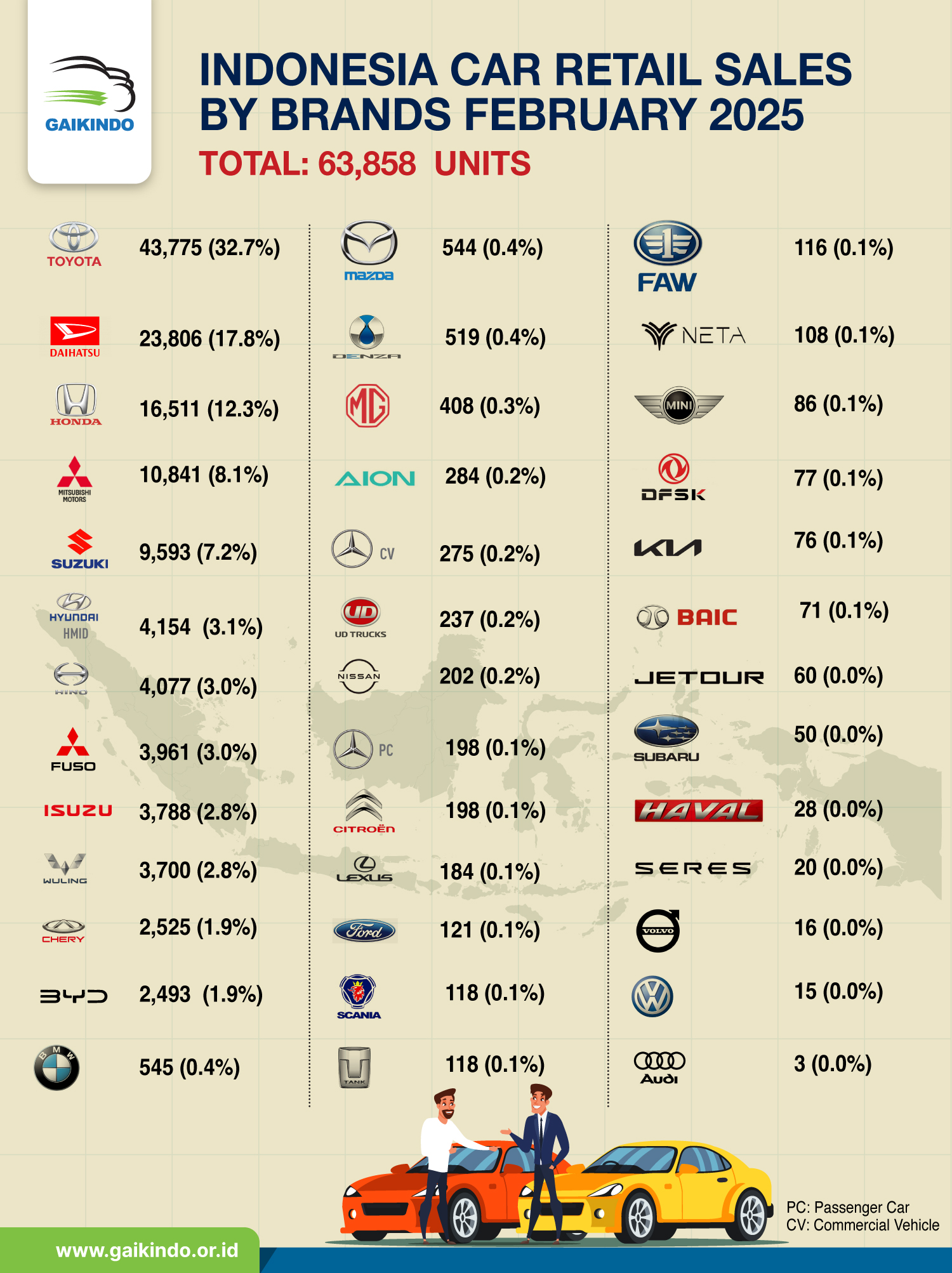 Penjualan Retail Mobil di Indonesia Berdasar Merek, Februari 2025