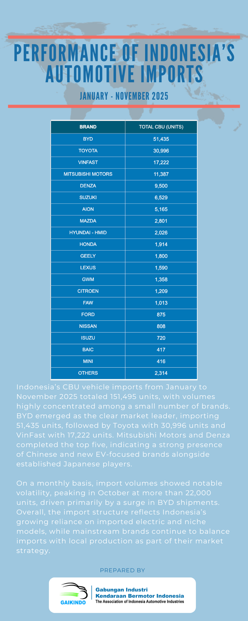 Performance of Indonesia’s Automotive Imports, January – November 2025