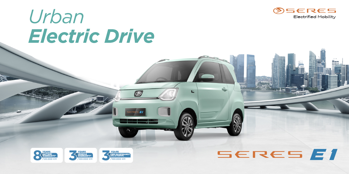 Seres E1 merupakan kendaraan listrik kategori city car yang dirancang untuk empat orang penumpang. Mobil listrik ini berbasis baterai kompak dengan desain stylish dan modern berpadu dengan fitur yang fungsional sehingga menjadi pilihan ideal untuk konsumen yang ingin mulai beralih ke mobil listrik.
