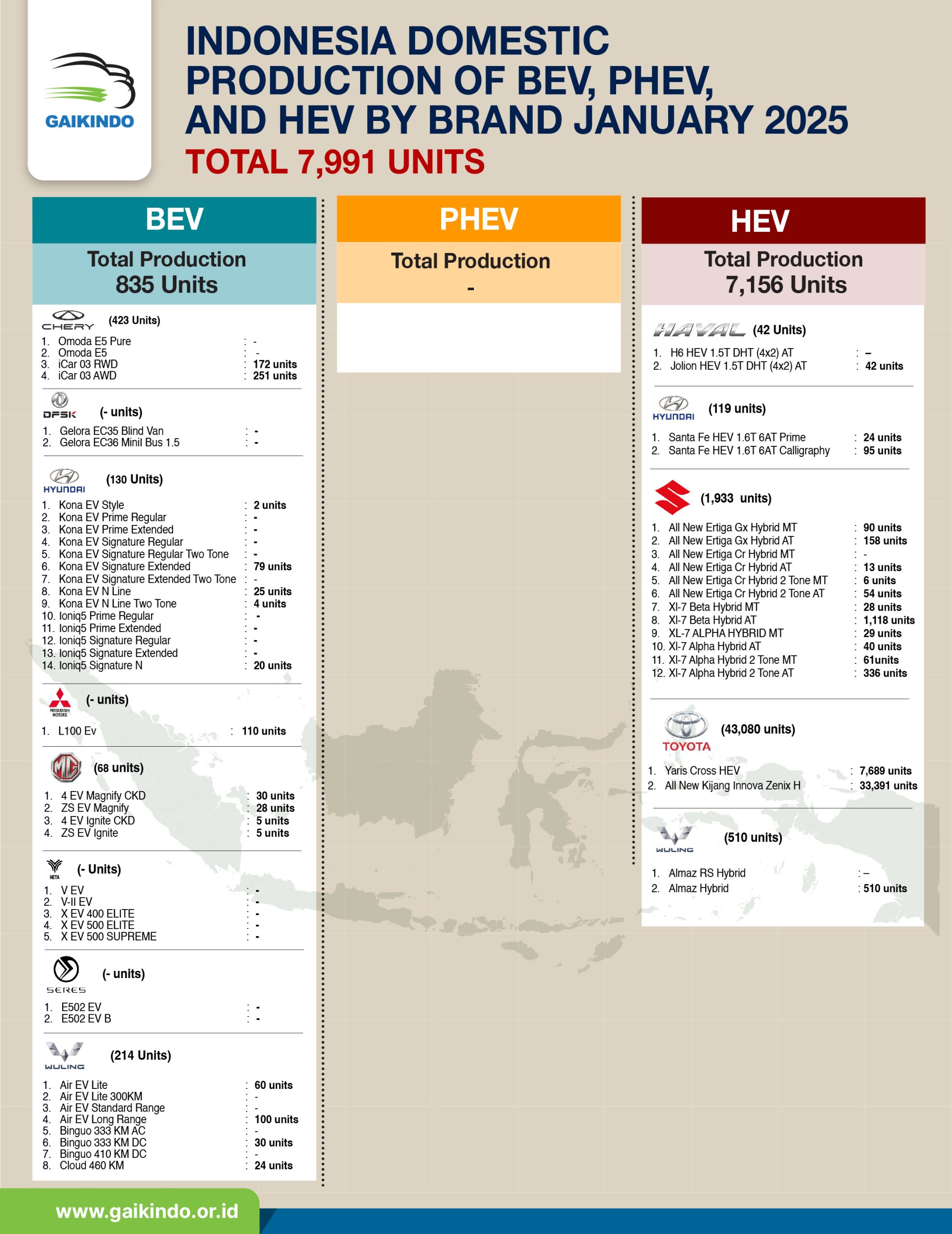 Produksi Domestik Mobil BEV, PHEV, dan HEV, Januari 2025
