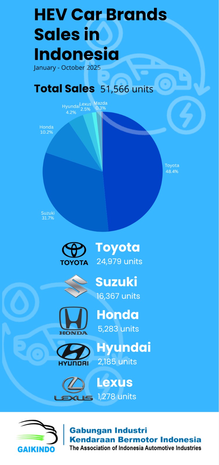 Infografis Sales of Hybrid Electric Vehicle (HEV) by Brand in Indonesia, January – October 2025 3 jam ago8 Views Source: GAIKINDO/ Ario Permadi FacebookXPinterestLinkedIn