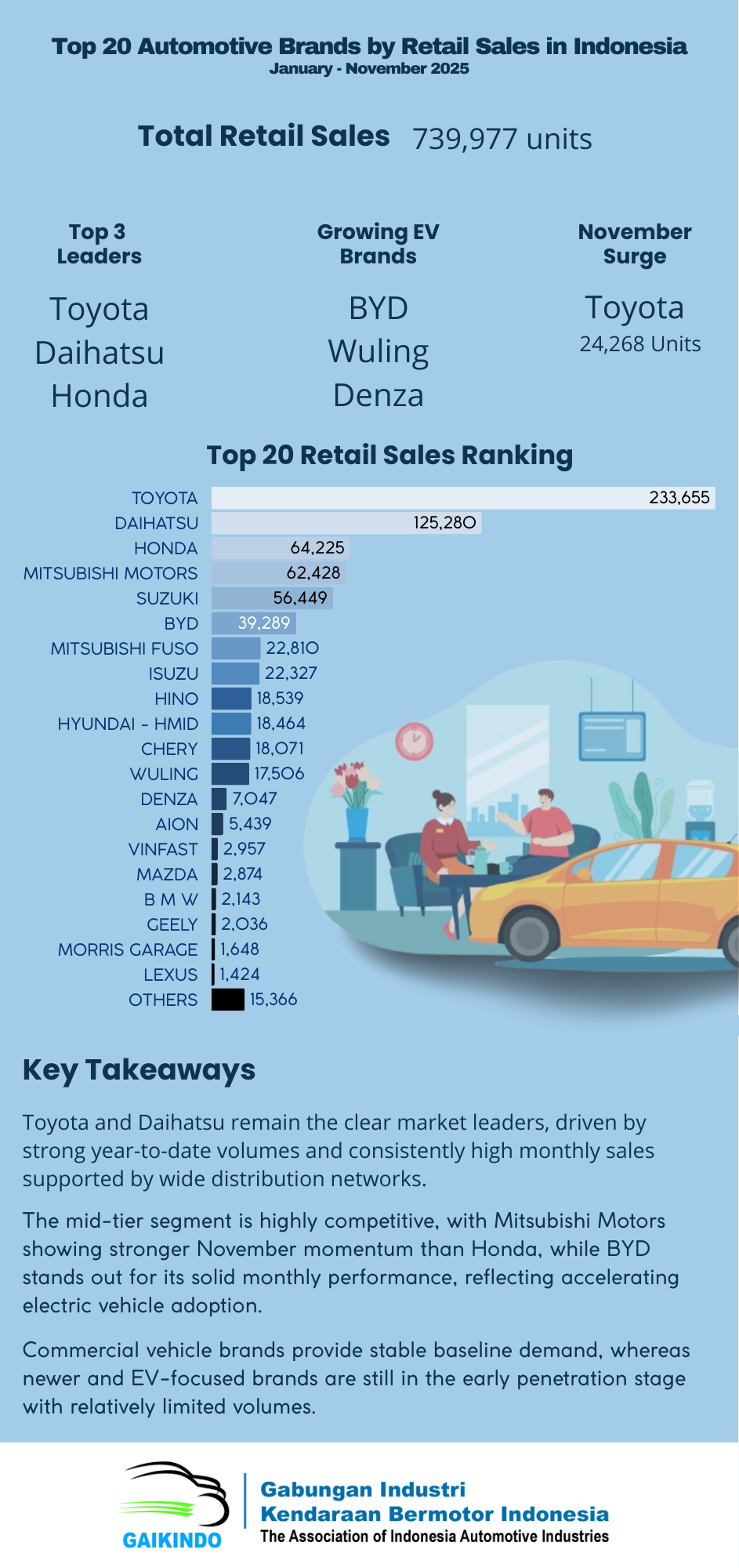 Top 20 Automotive Brands by Retail Sales in Indonesia, January – November 2025