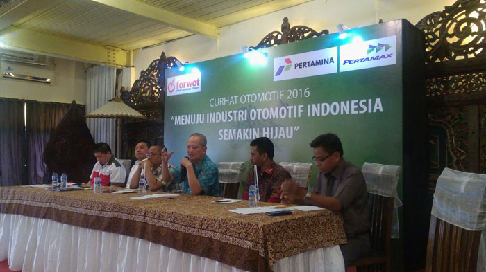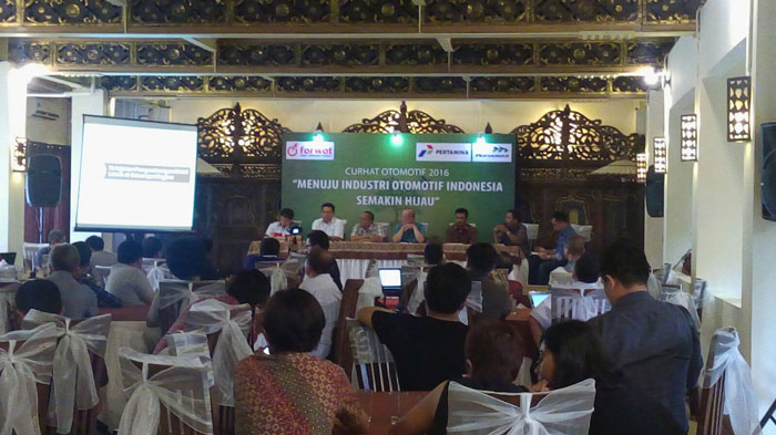 JAKARTA— Sejumlah wartawan yang tergabung dalam Forum Wartawan Otomotif (Forwot) mengelenggarakan diskusi tentang industri otomotif Indonesia yang ramah lingkungan. Diskusi bertajuk “Menuju Industri Otomotif Indonesia semakin Hijau” di Balai Sarwono, Jakarta, Kamis 21 Januari 2016. Diskusi menghadirkan sekitar 70 peserta, dengan lima narasumber, termasuk dari GAIKINDO yang diwakili oleh Budi Prasetyo Susilo. Hadir pula dalam diskusi tersebut Sekretaris Umum GAIKINDO Noegardjito serta pakar teknologi otomotif GAIKINDO Yuniarto. Hadir pula narasumber dari Kementerian Perindustrian, Pertamina, WALHI, dan PT Gajah Tunggal (FOTO-FOTO: Sigit Pramono, GAIKINDO News)